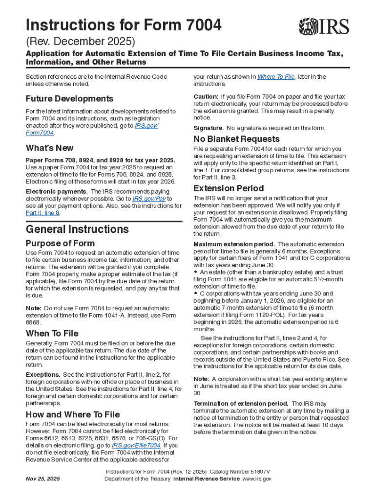 IRS Instruction 7004 2025-2026 free printable template