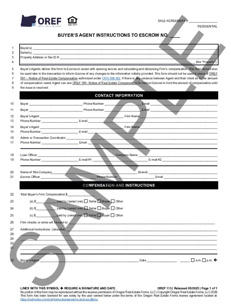 SALE AGREEMENT # ___ RESIDENTIALPL EBUYERS AGENT INSTRUCTIONS TO ESCROW NO. ___ 1 2 3 4Buyer(s) ___ Seller(s) ___ Property Address or Tax ID # ___ ___ (the Property)5 6 7 8 9Buyers Agents deliver
