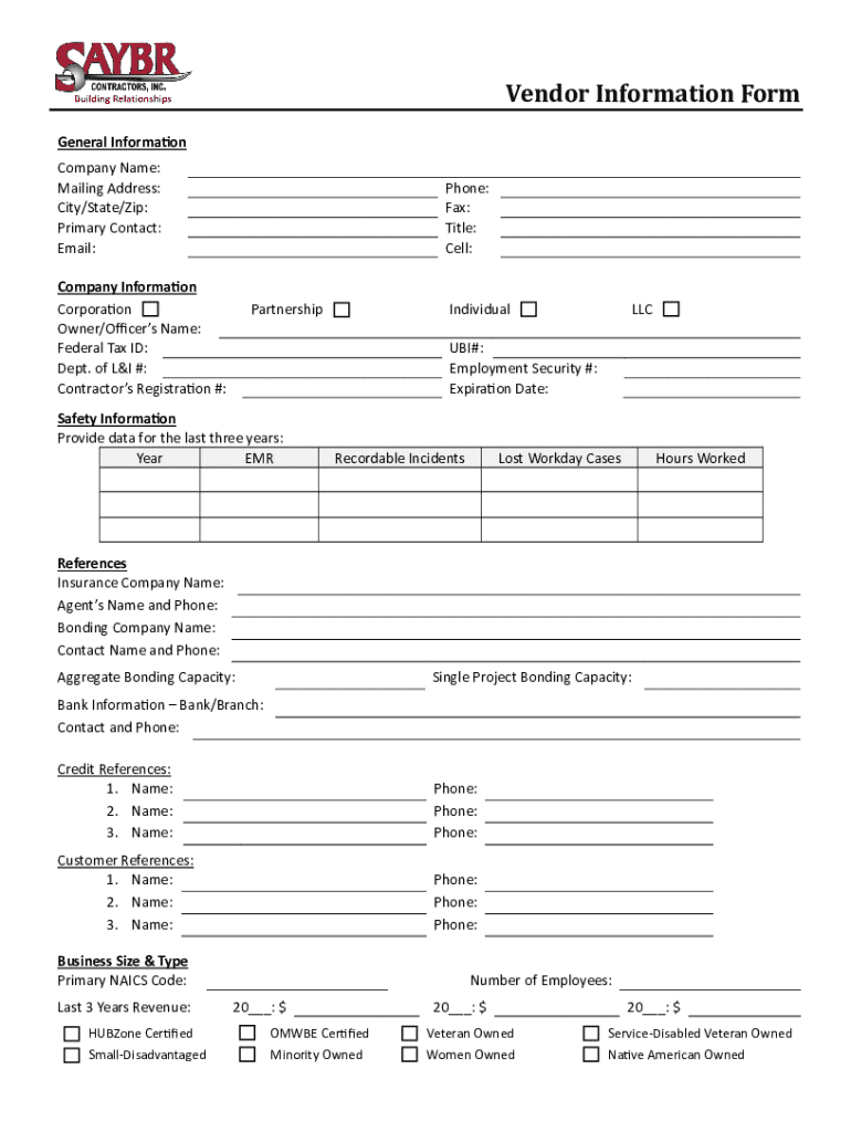 Vendor information forms typically require several key components to facilitate a thorough evaluation of the applicant. The essential information includes: