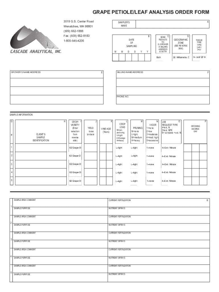 How to fill out grape petioleleaf analysis order?