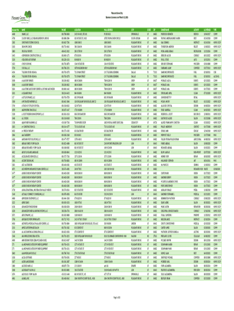 Get the free Pleasant Grove City - Business Licensing