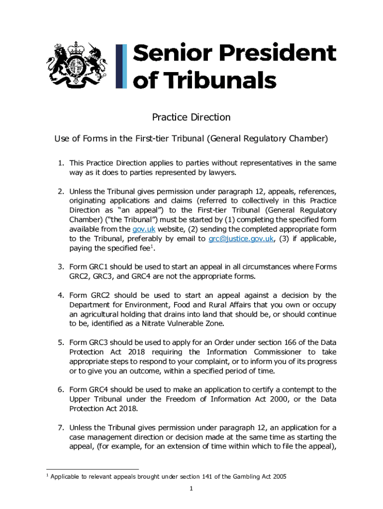 Get the free Practice Direction: Use of Forms in the First-tier Tribunal ...