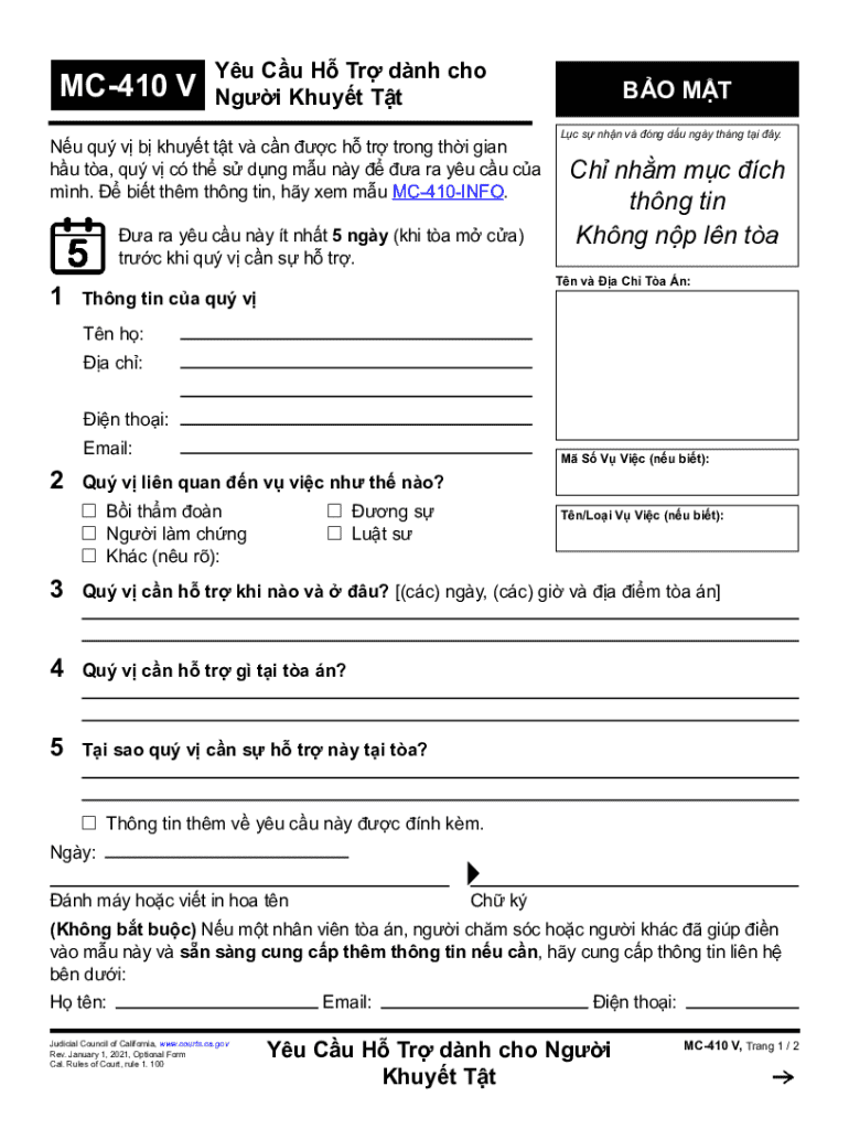 Importantly, the MC-410 form holds particular significance for individuals with disabilities, as it formally registers their needs and requests for support. Filling out this form accurately and comprehensively ensures that the requests are taken seriously and considered by the relevant authorities.