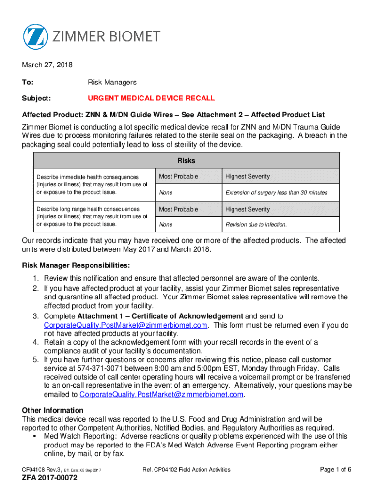 Zimmer Biomet Inc recalls form: A detailed how-to guide