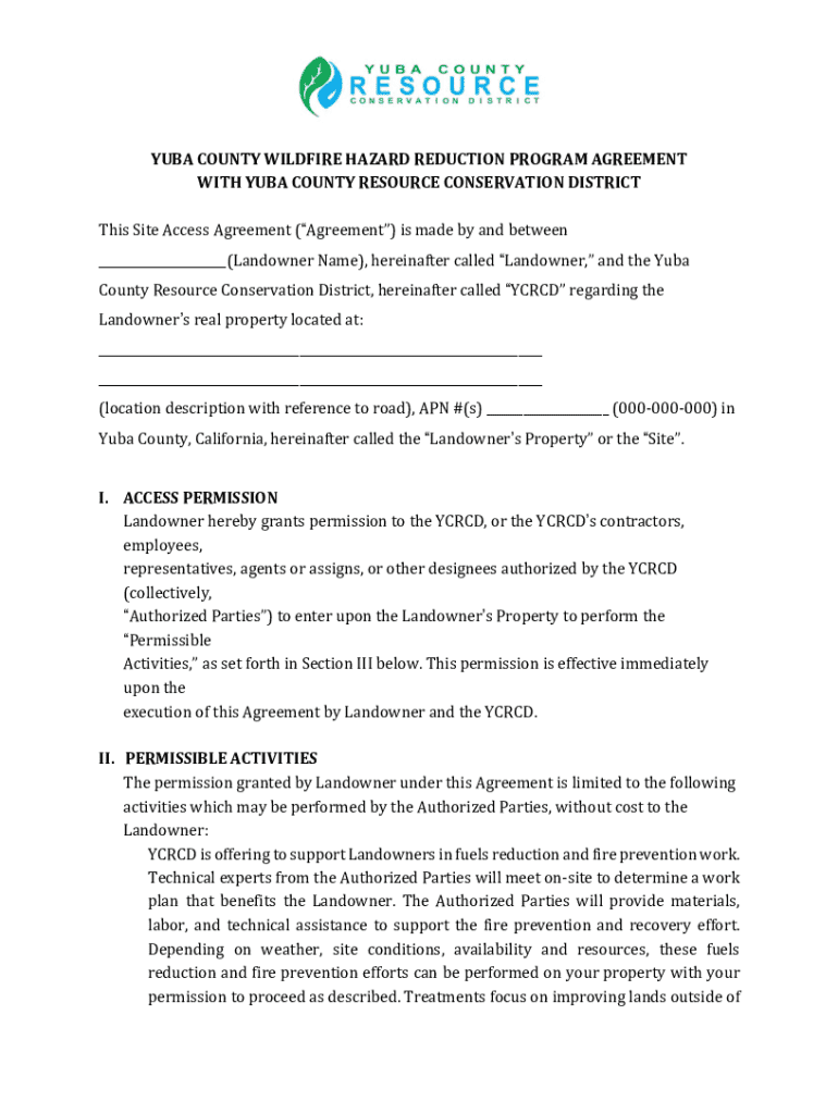 Get the free yuba county wildfire hazard reduction program agreement
