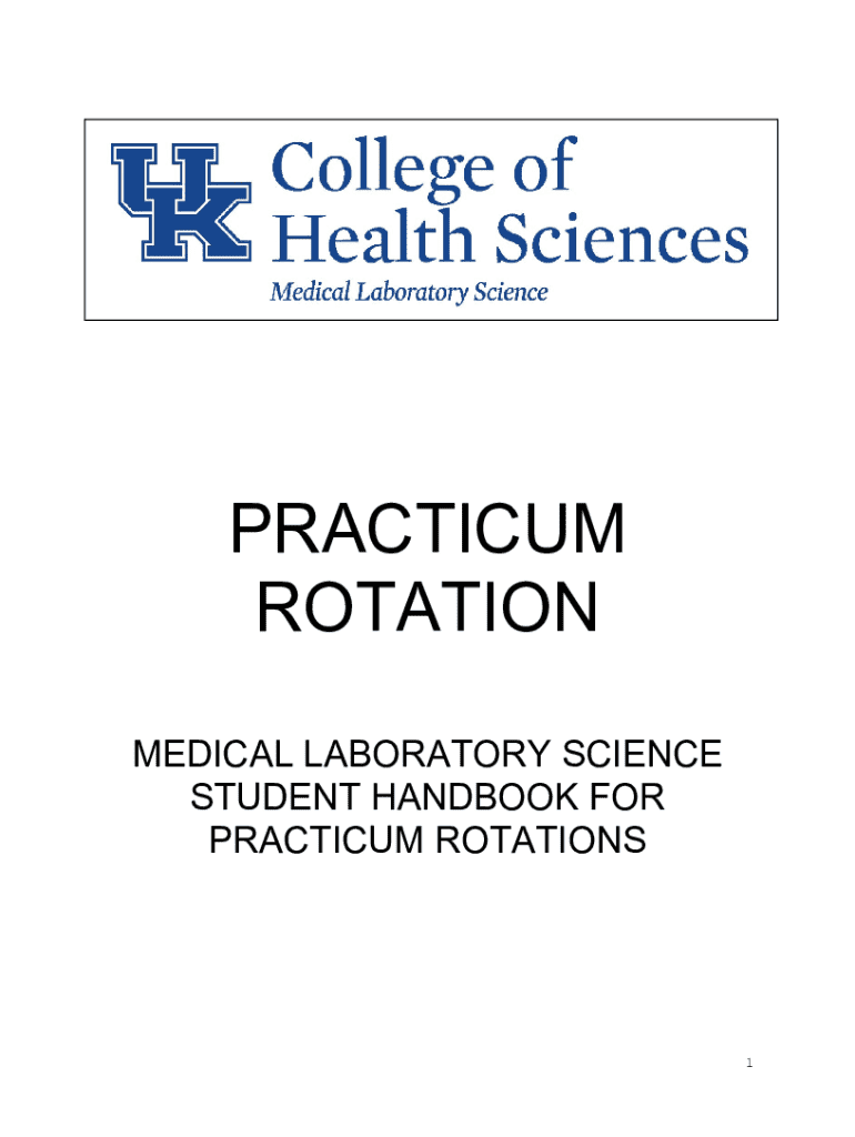 PRACTICUM ROTATION MEDICAL LABORATORY SCIENCE STUDENT HANDBOOK FOR PRACTICUM ROTATIONS1TABLE OF CONTENTS GENERAL INFORMATION MLS Clinical Coordinators Information Page .............................................................................3