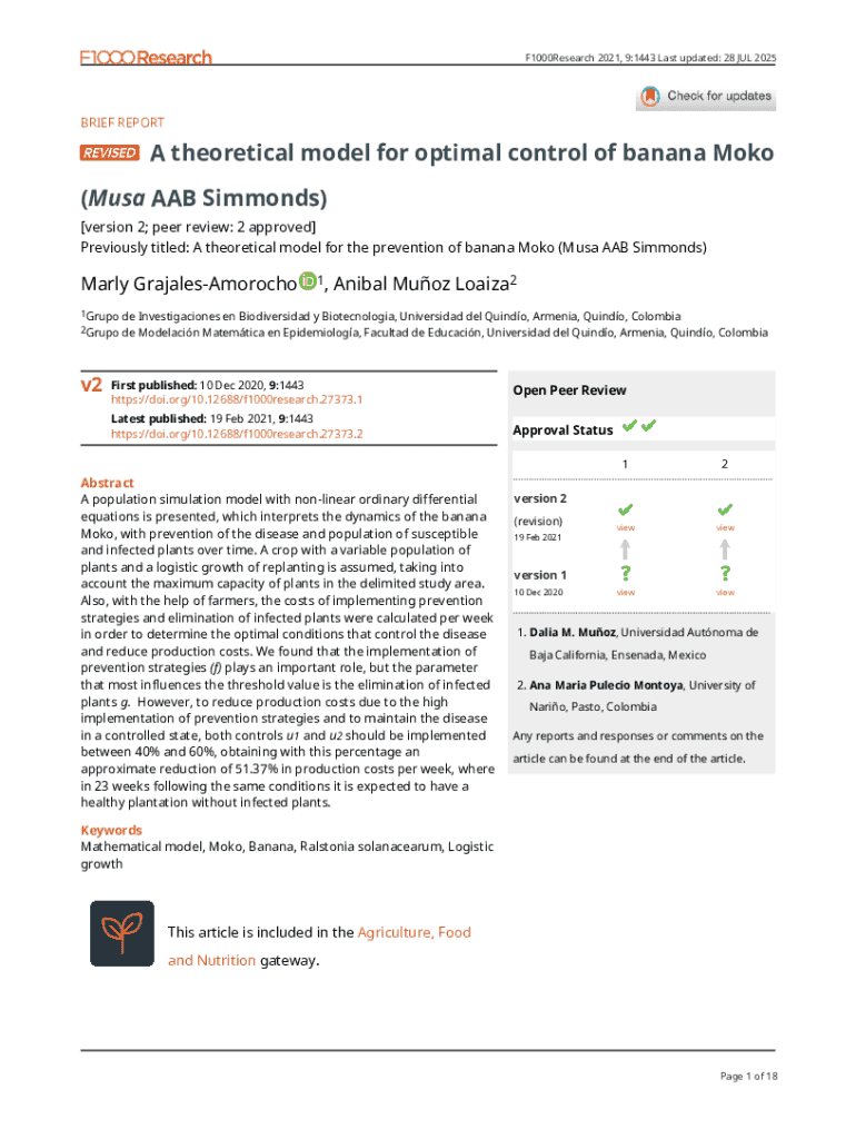 Get the free A theoretical model for optimal control of banana Moko (Musa AAB ...