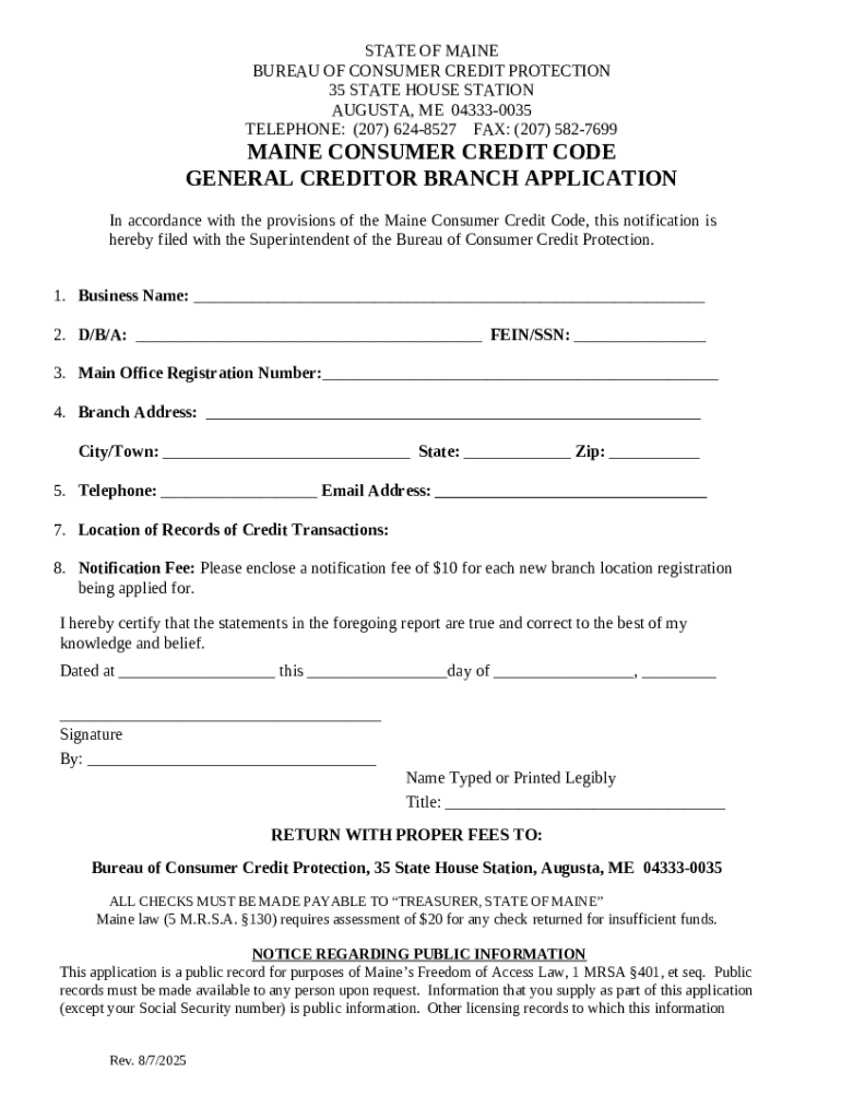 Frequently asked questions about the form Consumer Loan Servicer Branch Application (DOCX)