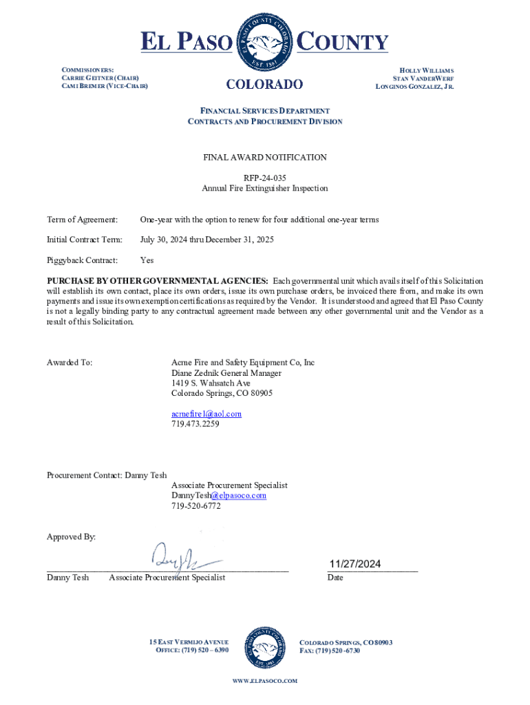 Get the free 23-060 RFP Notice of Intent to Award