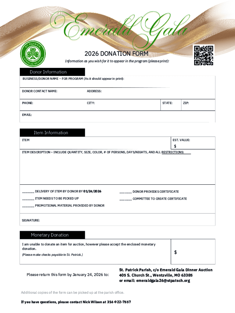 Ultimately, the Sponsorship Form encapsulates the objectives of promoting collaboration, community spirit, and the elegant celebration embodied by the Emerald Gala. By taking the time to fill out this form properly, sponsors can contribute meaningfully to a cause that resonates deeply within the community.