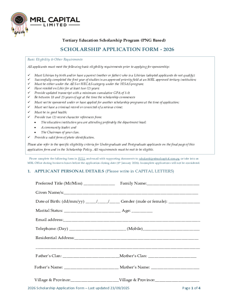 Get the free SCHOLARSHIP APPLICATION FORM - 2026