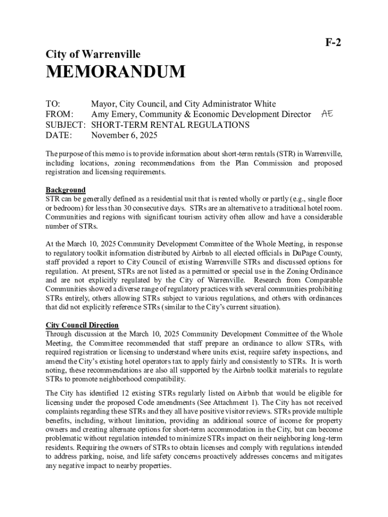Upcoming meetings are typically listed on the City of Warrenville website, encouraging participation from various groups within the community. This forum can be beneficial for people who have specific interests or concerns related to community development or localized policies. Participation in these meetings is a way for residents to express their opinions on recent initiatives, including those affecting public services and local standards.