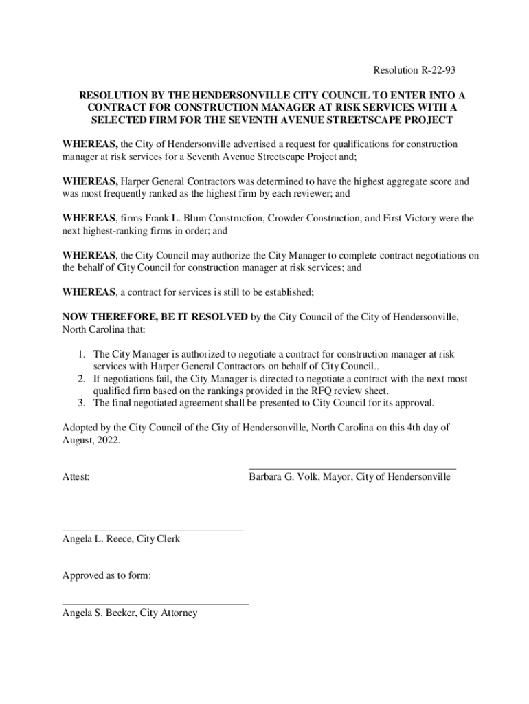 Get the free RESOLUTION BY THE HENDERSONVILLE CITY COUNCIL ...