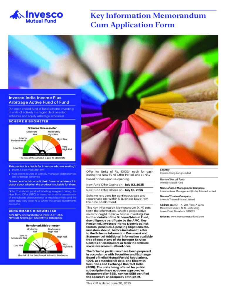 Key Information Memorandum Cum Application FormInvesco India Income Plus Arbitrage Active Fund of Fund (An open ended fund of fund scheme investing in units of actively managed debt oriented schemes