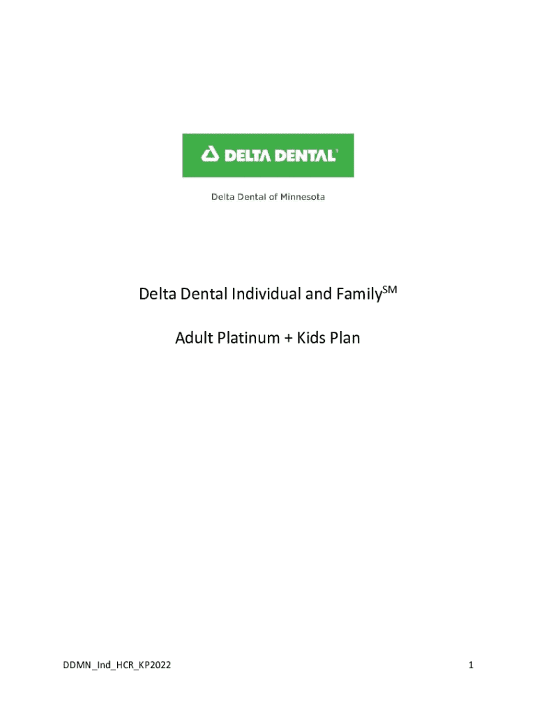 Delta Dental Individual and FamilySM Adult Platinum + Kids PlanDDMN_Ind_HCR_KP20221Delta Dental Individual and FamilySM Adult Platinum + Kids Plan Thank you for choosing Delta Dental to protect your