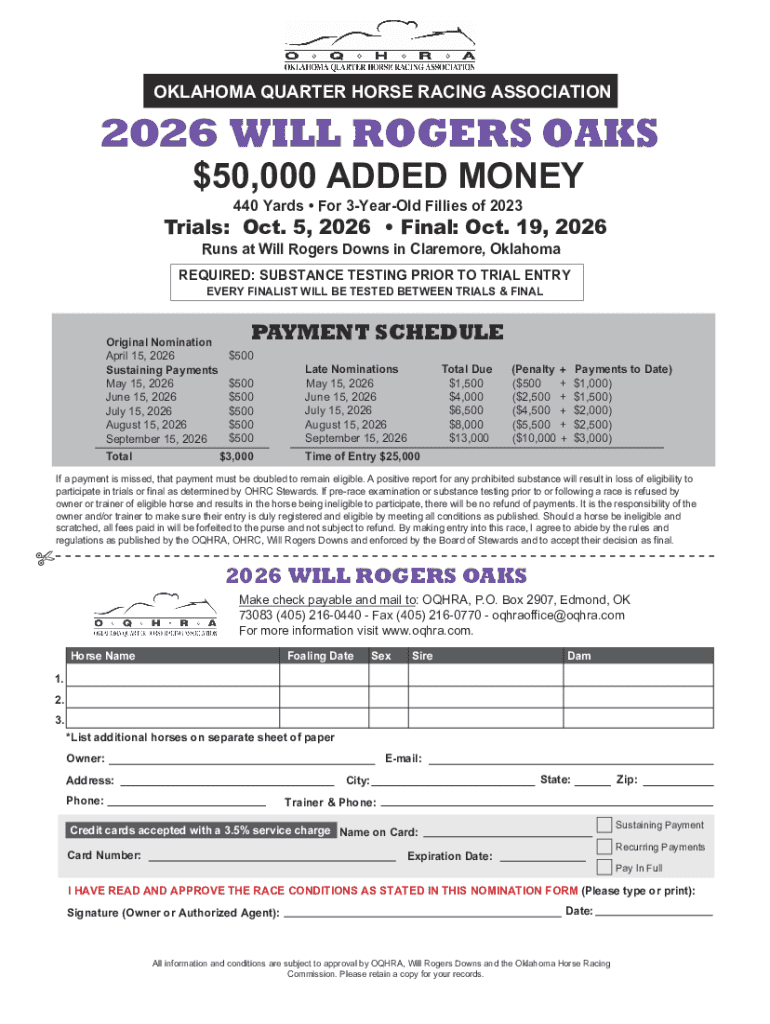 Get the free OQHRA Introduces the Will Rogers OaksDebuting in 2026