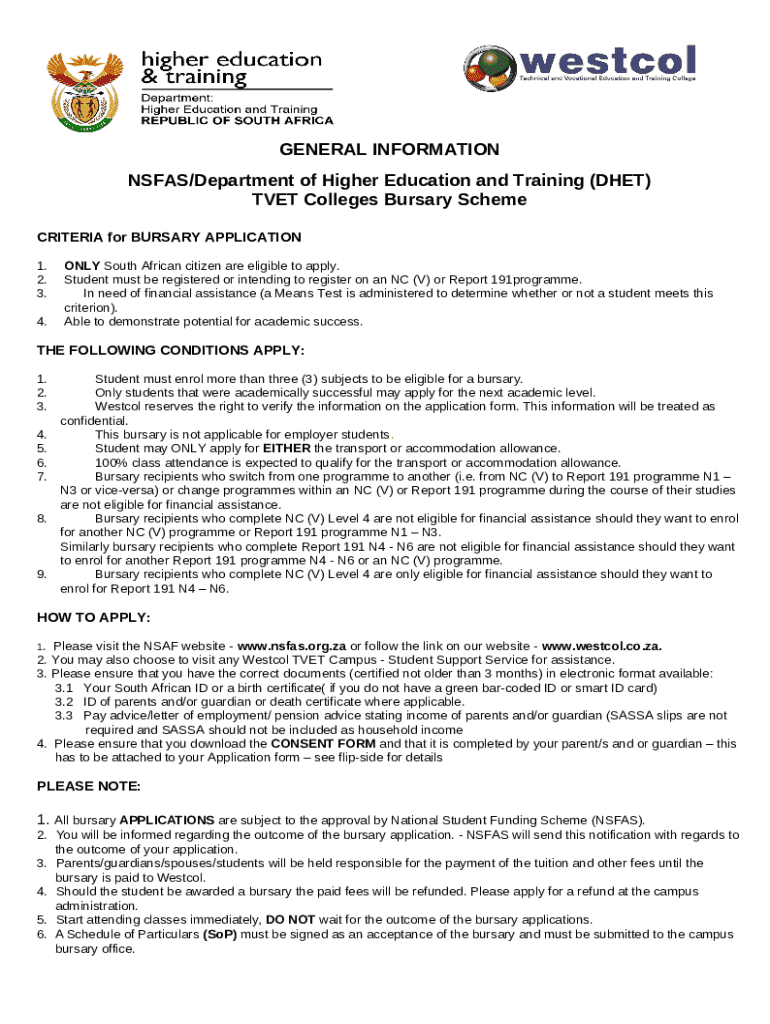 NSFAS bursary application criteria in South Africa word template: frequently asked questions