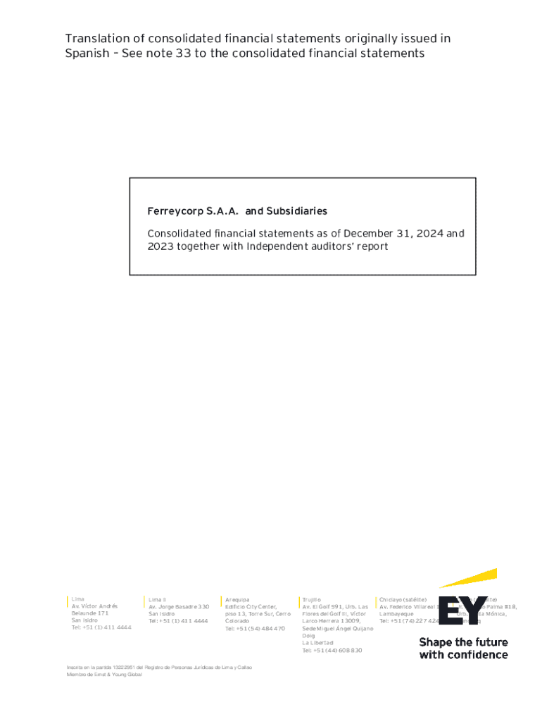Translation of consolidated financial statements originally issued in SpanishSee note 33 to the consolidated financial statementsFerreycorp S.A.A. and Subsidiaries Consolidated financial statements