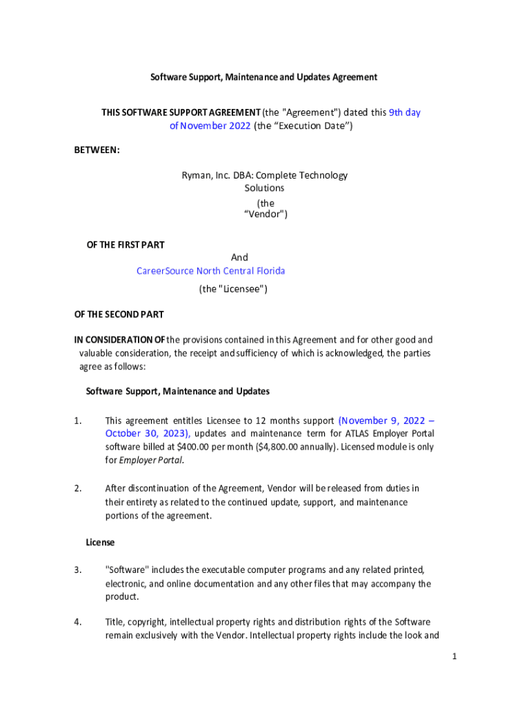 Get the free Software Support, Maintenance and Updates Agreement