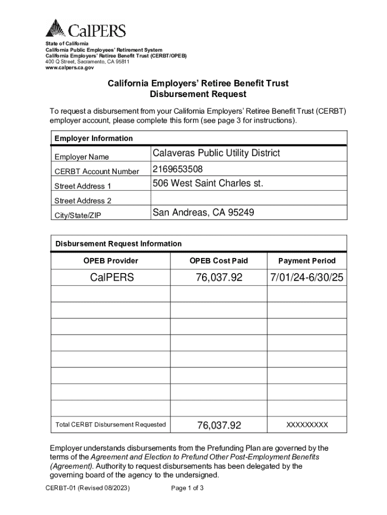 Get the free Page 1 of 3 CALAVERAS PUBLIC UTILITY DISTRICT 506 W ...