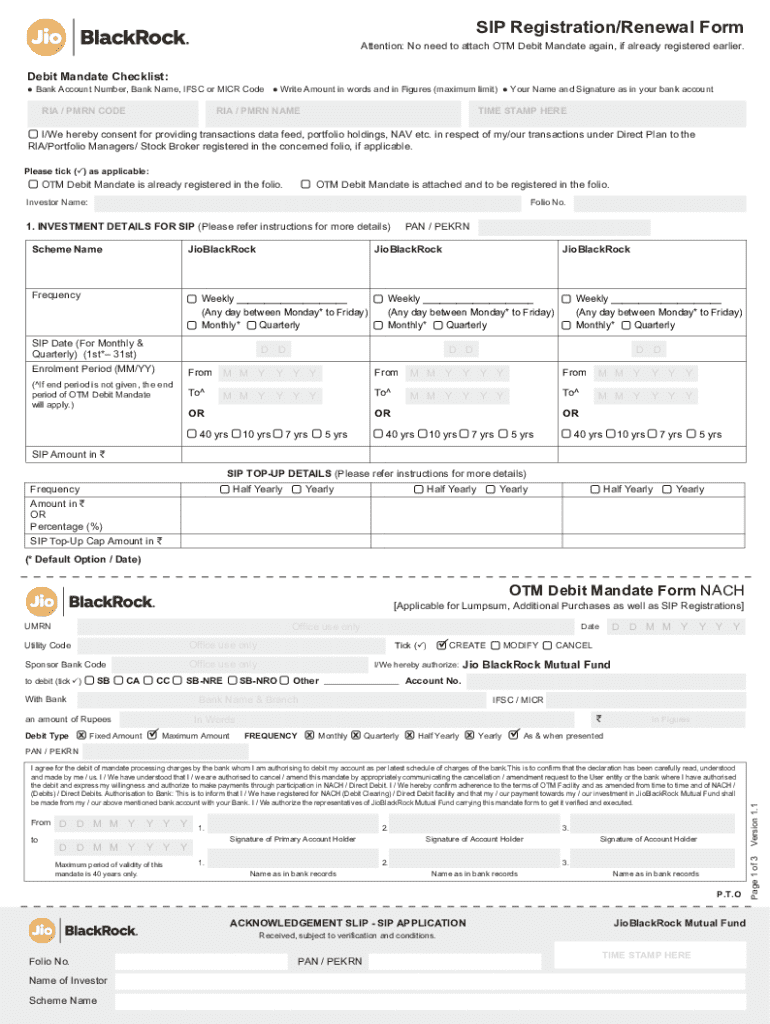 The Jio Blackrock Flexi Cap Form is an essential document for investors looking to participate in this fund. The primary purpose of the form is to gather necessary information from investors, allowing them to make their investment efficiently. It serves as a contract between the investor and the fund, ensuring that all necessary details are properly recorded.