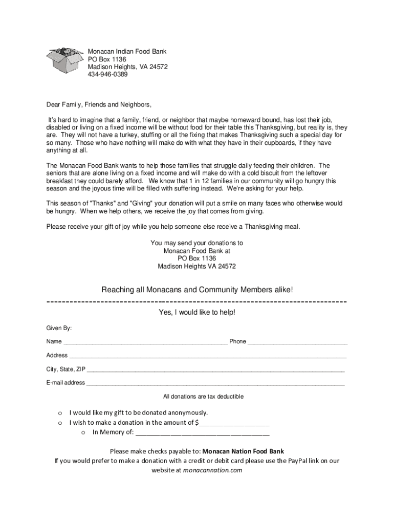 Get the free Monacan Indian Nation Food BankMadison Heights VA