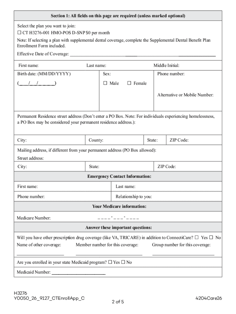 OMB No. 09381378 Expires: 12/31/2026Exhibit 1: MODEL INDIVIDUAL ENROLLMENT REQUEST FORM TO ENROLL IN A MEDICARE ADVANTAGE PLAN (PART C) Who can use this form?People with Medicare who want to join