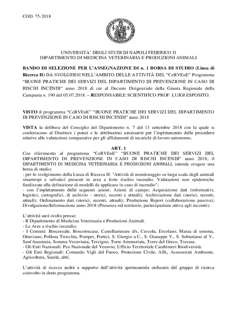 Ottieni il gratuito bando di selezione per l'assegnazione n. 1 borsa di ricerca ...