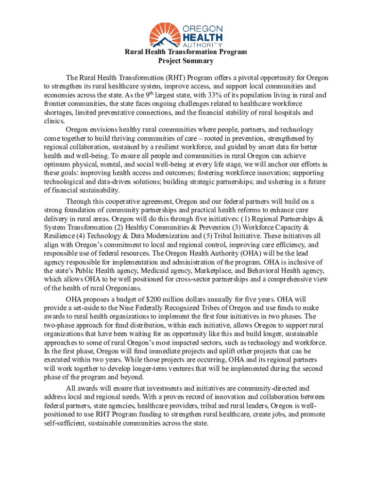 Get the free Rural Health Transformation Program Project Summary The Rural ...
