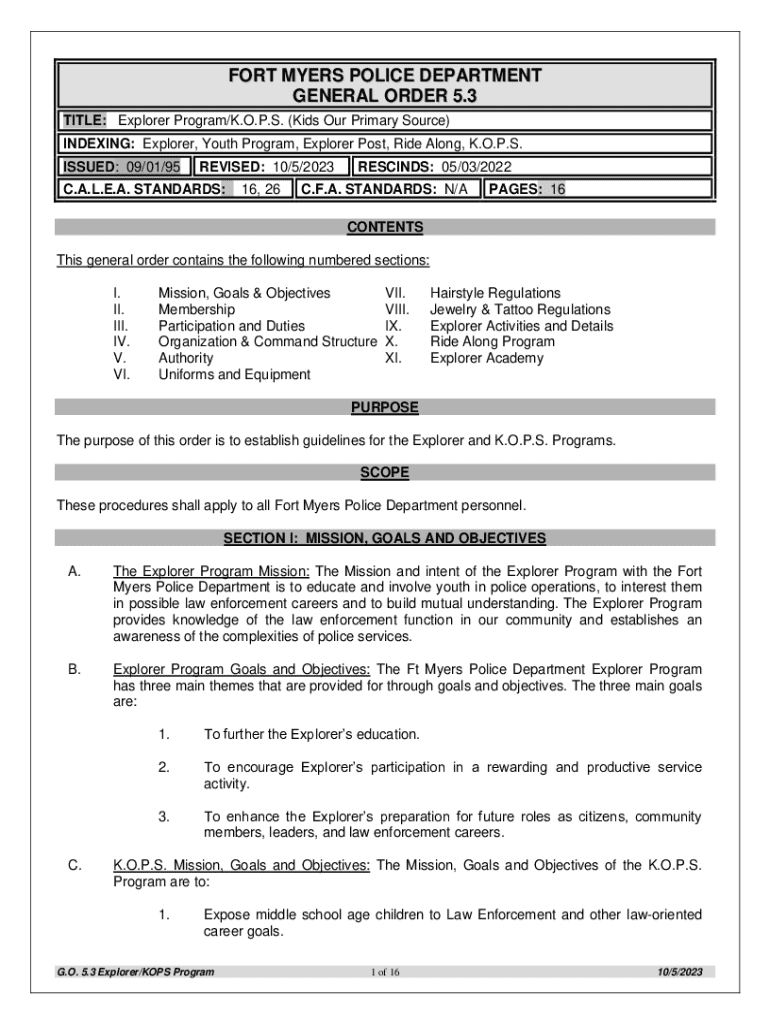 Get the free FORT MYERS POLICE DEPARTMENT GENERAL ORDER 5.3