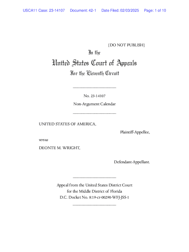 USCA11 Case: 2314107Document: 421Date Filed: 02/03/2025Page: 1 of 10[DO NOT PUBLISH]In theUnited States Court of Appeals For the Eleventh Circuit ___ No. 2314107 NonArgument Calendar ___ UNITED STATES