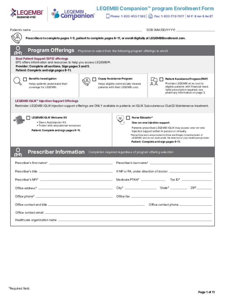Completing the Leqembi Companion Program enrollment form can appear daunting, but following a structured approach makes it much easier. The first step is to access the enrollment form, which is available online through the official Leqembi website. Alternatively, health care providers and patient navigation services can provide physical copies of the form for convenience.