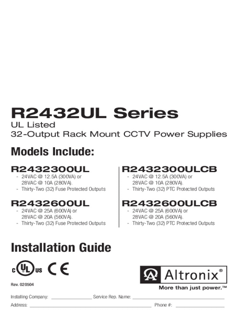 Installing the r2432ul series AC CCTV system can be straightforward if you follow an organized approach. The installation process involves configuring the AC power supply, connecting the appropriate hardware, and accurately filling out the required documentation.