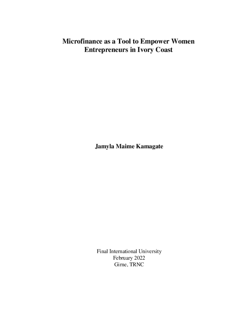 Get the free Microfinance as a Tool to Empower Women Entrepreneurs in Ivory ...