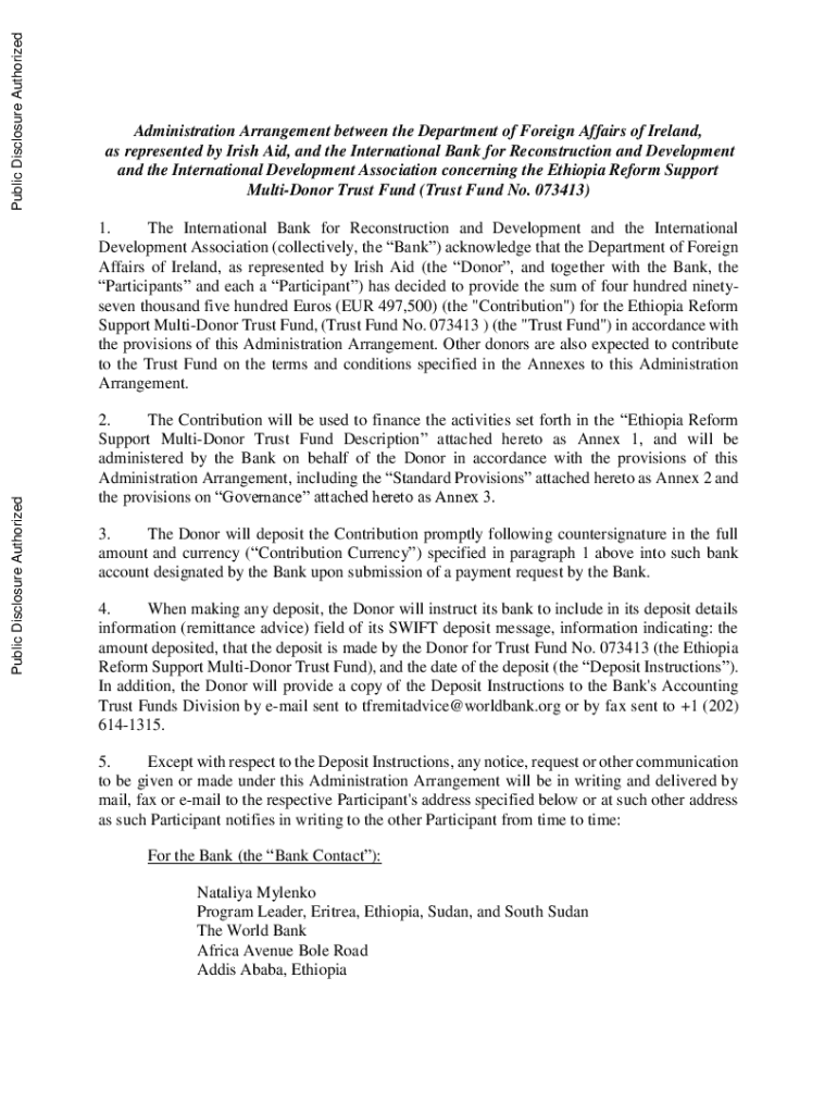 Public Disclosure Authorized Public Disclosure Authorized Public Disclosure Authorized Public Disclosure AuthorizedAdministration Arrangement between the Department of Foreign Affairs of Ireland,