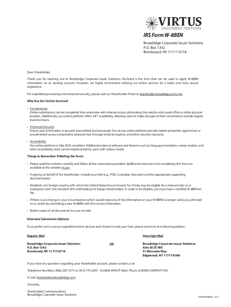 Get the free IRS Form W-8BEN - Shareholder Portal