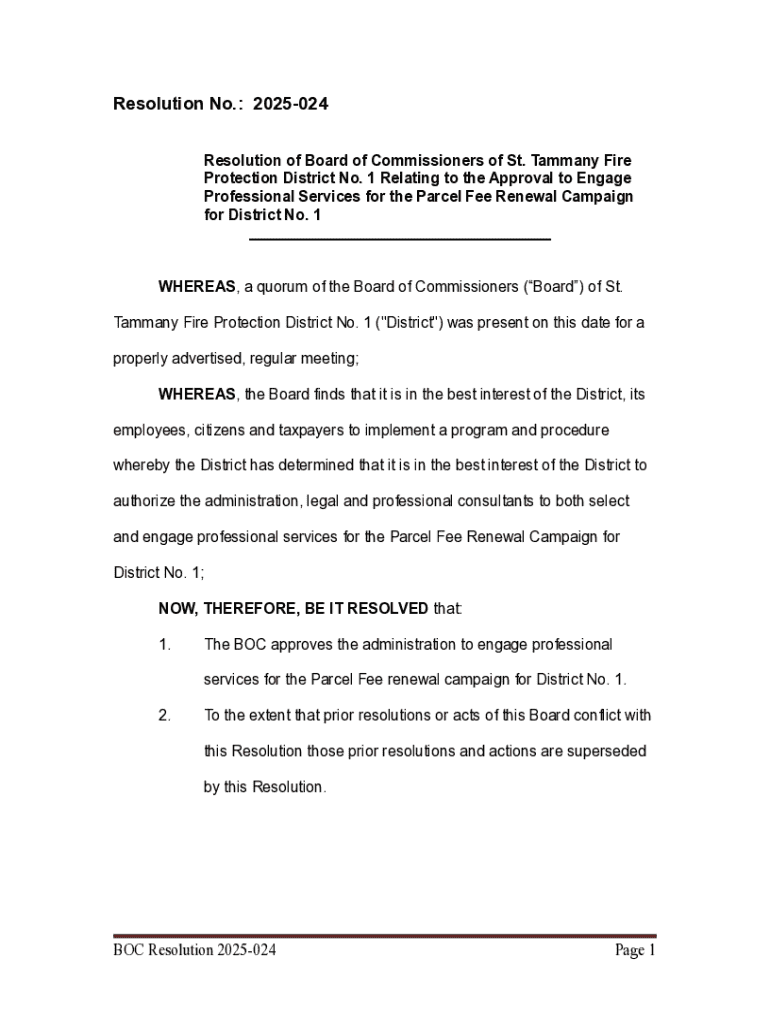 Get the free STFPD No. 1 BOC Resolution (2025-024) Parcel Fee Professional Services 05202025