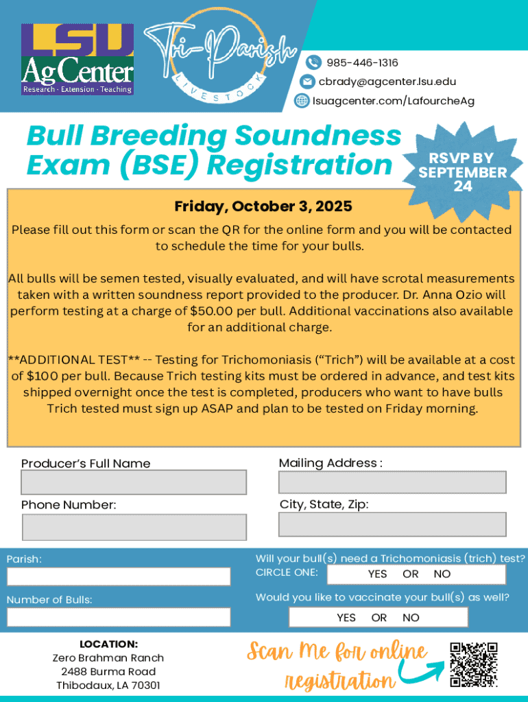 The BSE form plays a critical role in tracking vaccinations and maintaining livestock health records. Understanding its purpose and importance ensures compliance with regulatory requirements and enhances the management of herd health. This form typically requires key information such as the animal's identification, vaccination dates, and the specific vaccine strain used. Accurate record-keeping directly impacts the ability to trace the history of vaccinations, which is vital for both herd management and epidemiological studies.