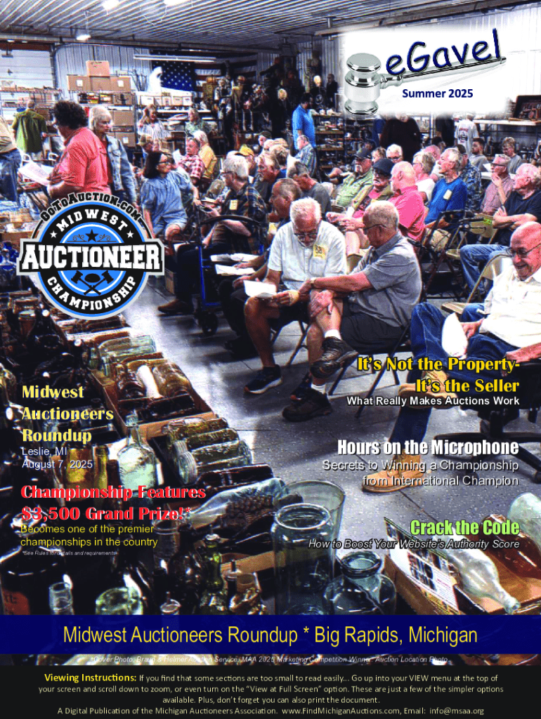Summer 2025Midwest Auctioneers Roundup Leslie, MI August 7, 2025 2024Championship Features $3,500 Grand Prize!* Becomes one of the premier championships in the countryIts Not the PropertyIts the Seller