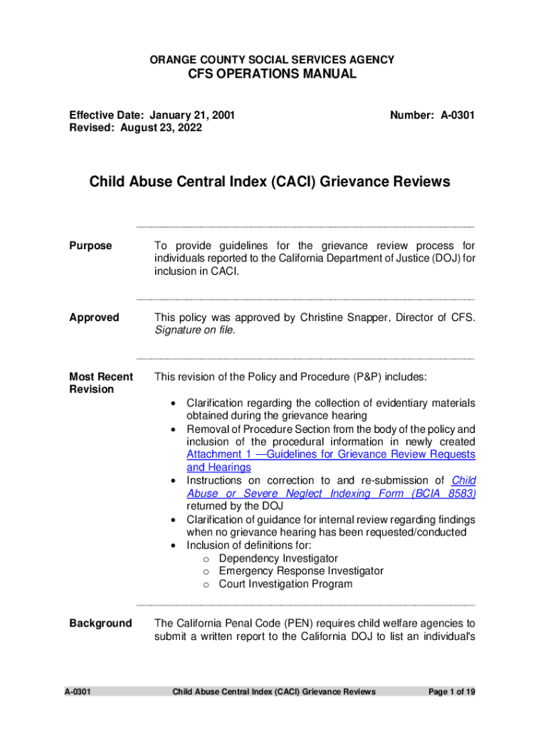 The importance of the CACI in child protection cannot be overstated; it provides a structured way to capture allegations of abuse, ensuring that relevant agencies have access to vital information. This enhances the ability of child protective services to intervene promptly and provide necessary support to at-risk children. Furthermore, understanding the nuances of the CACI process helps in strengthening community efforts to safeguard children.