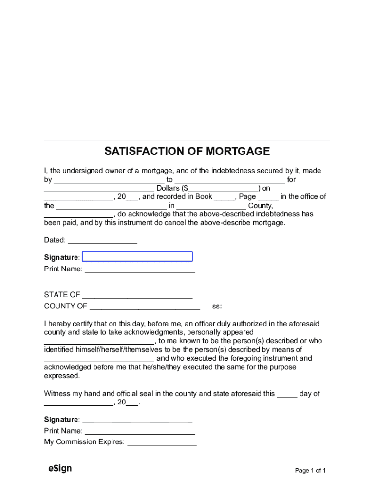 Get the Free Mortgage Release Form (Satisfaction of Mortgage)