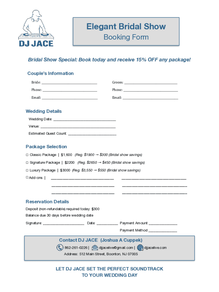 The importance of a well-structured booking form cannot be understated. It streamlines the entire booking process, allowing DJs to manage requests efficiently and minimize the risk of misunderstandings. When both parties know what to expect, the likelihood of a successful event increases significantly.