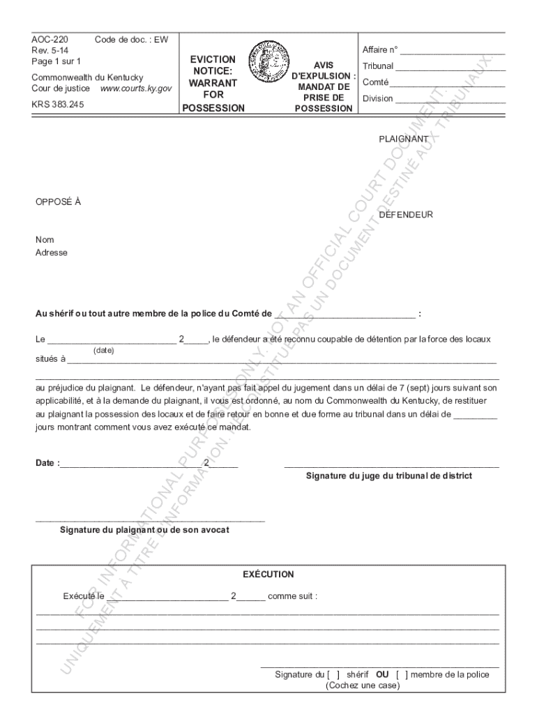Code de doc. : EW.Affaire n ___ AVIS Tribunal ___ D\'EXPULSION : Comt ___ MANDAT DE PRISE DE Division ___ POSSESSIONUE FO M RI EN N T FOTI RM TR AT E D\' I O N IN FO AL RM PU AT R P IO OS N. NE ES