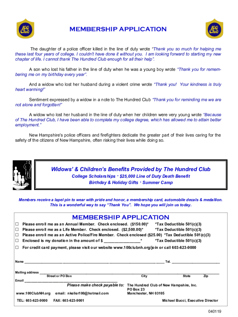 MEMBERSHIP APPLICATION The daughter of a police officer killed in the line of duty wrote Thank you so much for helping me these last four years of college. I couldnt have done it without you. I am