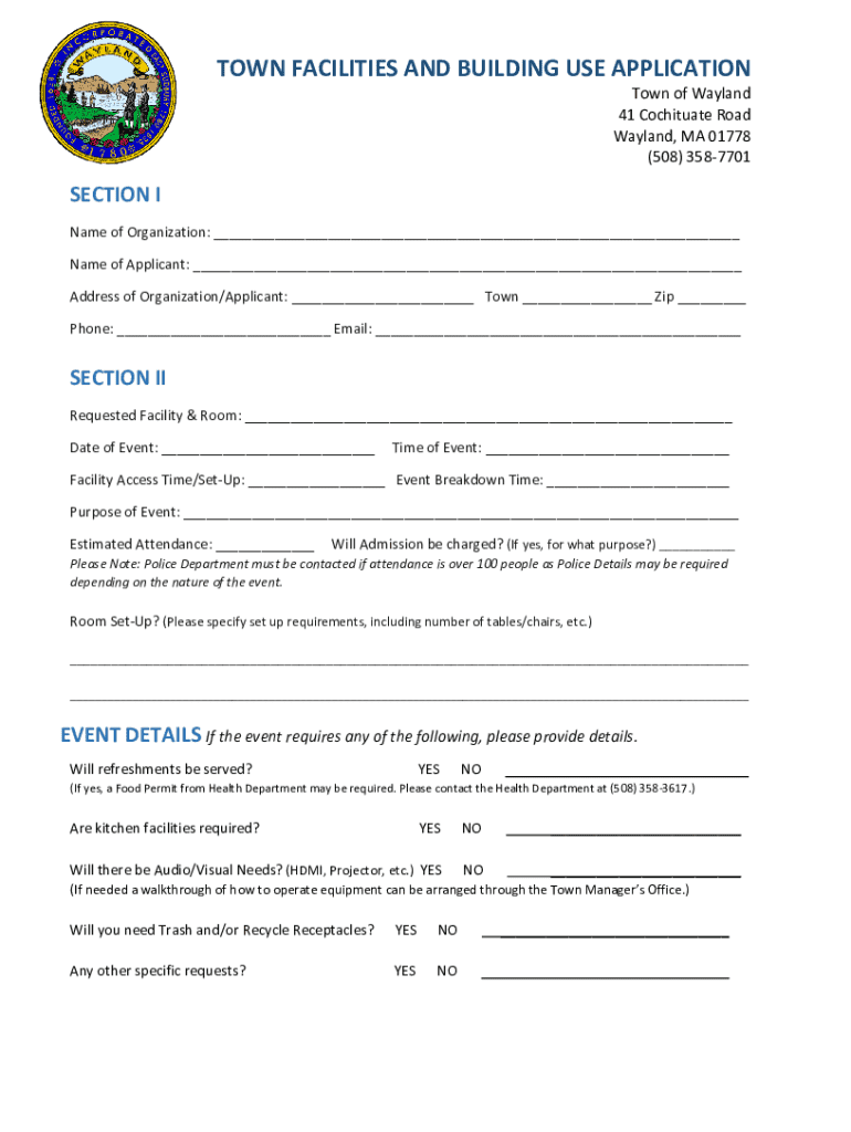 Get the free TOWN FACILITIES AND BUILDING USE APPLICATION