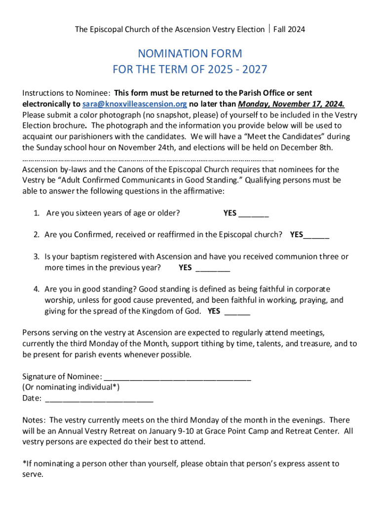 Get the free NOMINATION FORM FOR THE TERM OF 2025 - 2027