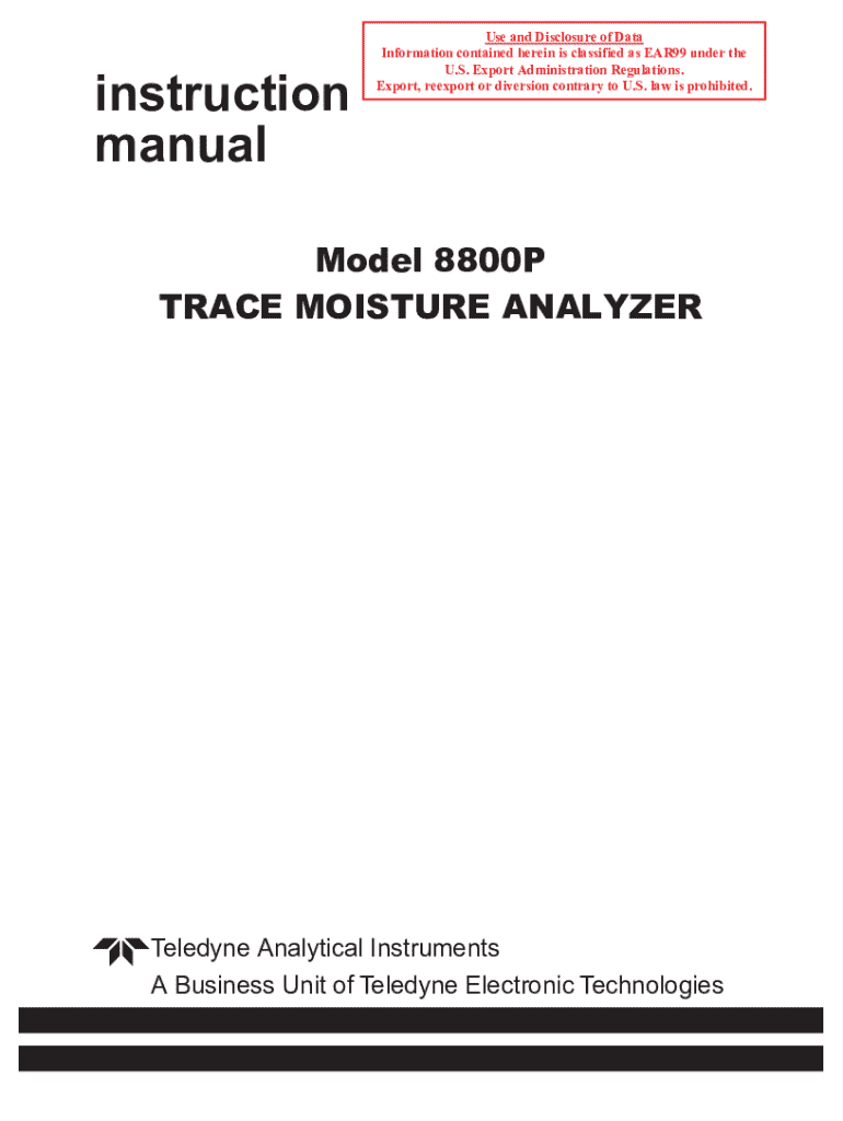 Get the free 8800 Instruction Manual. 8800A & 8800B Trace Moisture Analyzer