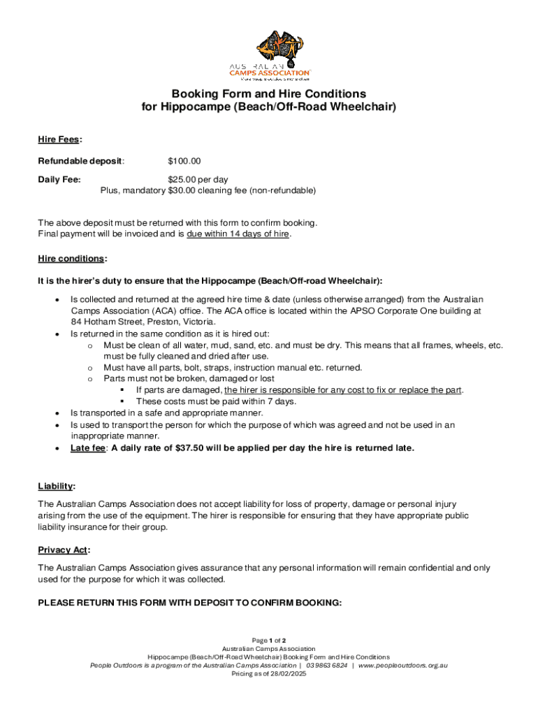 Get the free Booking Form and Hire Conditions for Hippocampe (Beach/Off ...