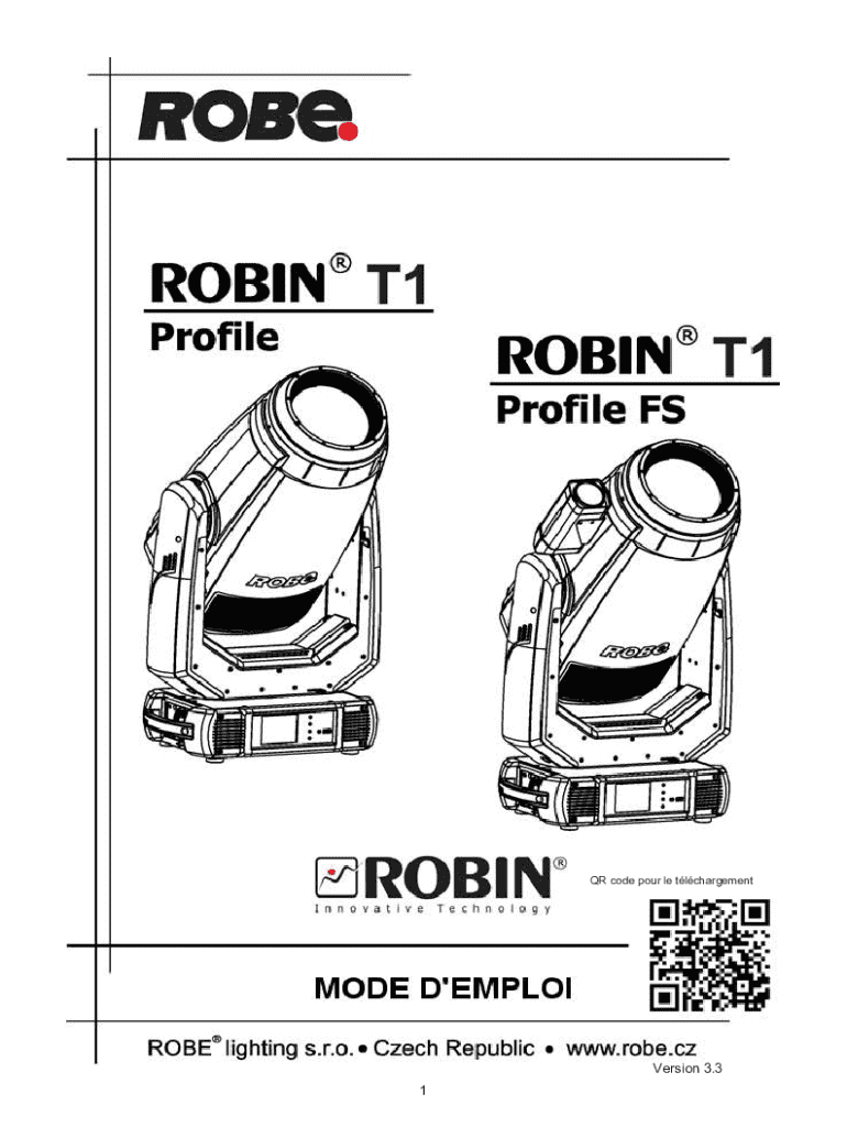 QR code pour le tlchargementVersion 3.3 1Robin T1 Profile Robin T1 Profile FS Table des matires 1. Instructions de scurit .................................................................................................................