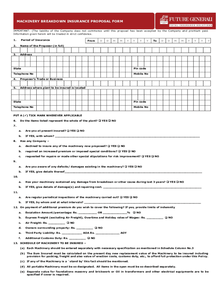Comprehensive Guide to Machinery Breakdown Insurance Proposal Form